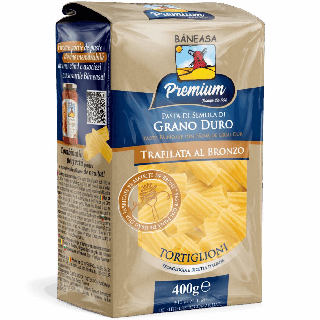 Pastele Băneasa Premium Trafilata al Bronzo aduc în farfurie rafinamentul adevărat al bucătăriei italiene. Textura lor unică, obținută prin matrițe de bronz, face ca fiecare fir de pastă să rețină sosul mai bine, transformând orice rețetă într-o experiență autentică și plină de savoare.