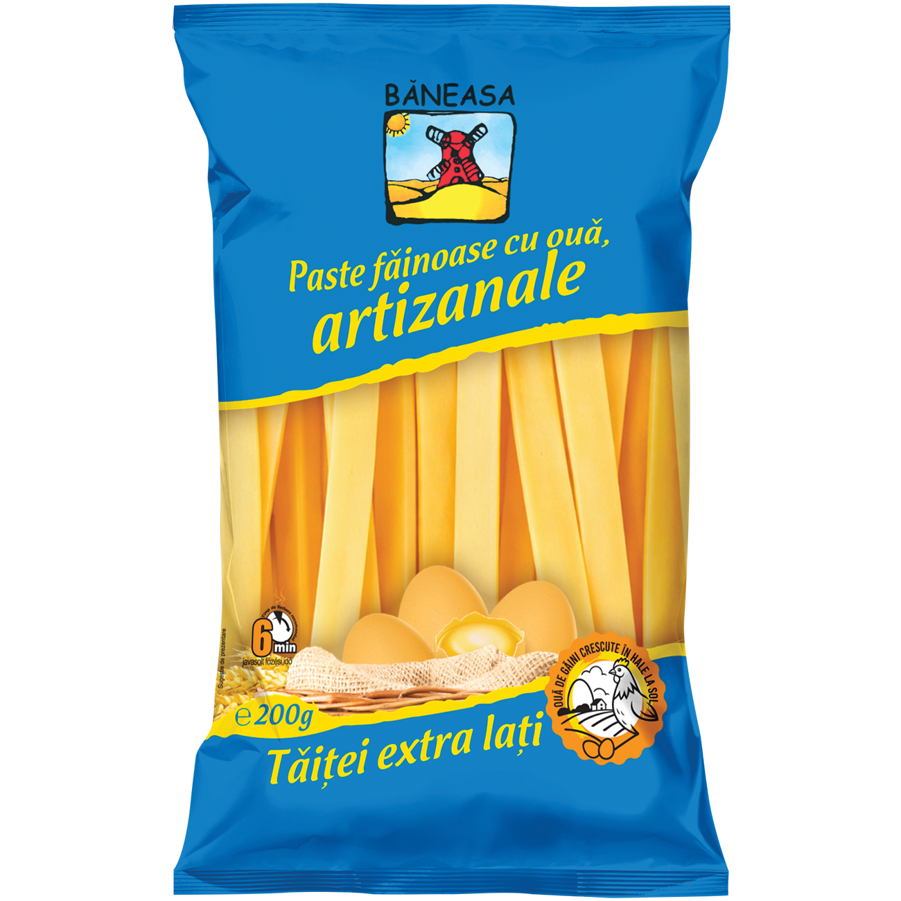 Tăiței extra lați cu 2 ouă Băneasa 200g