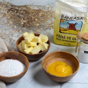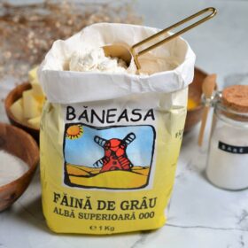 Pentru că folosim foarte puține ingrediente pentru rețeta de Biscuiți fragezi pentru Paște, este important ca ele să fie de calitate – unt de min 80% grăsime, vanilie de calitate și mai ales o făină foarte bună. De aceea am ales făină mea preferată – făină 000 de la Băneasa, ideală pentru orice fel de produse de patiserie, de la biscuiți la prăjituri, de la tarte la cozonac.