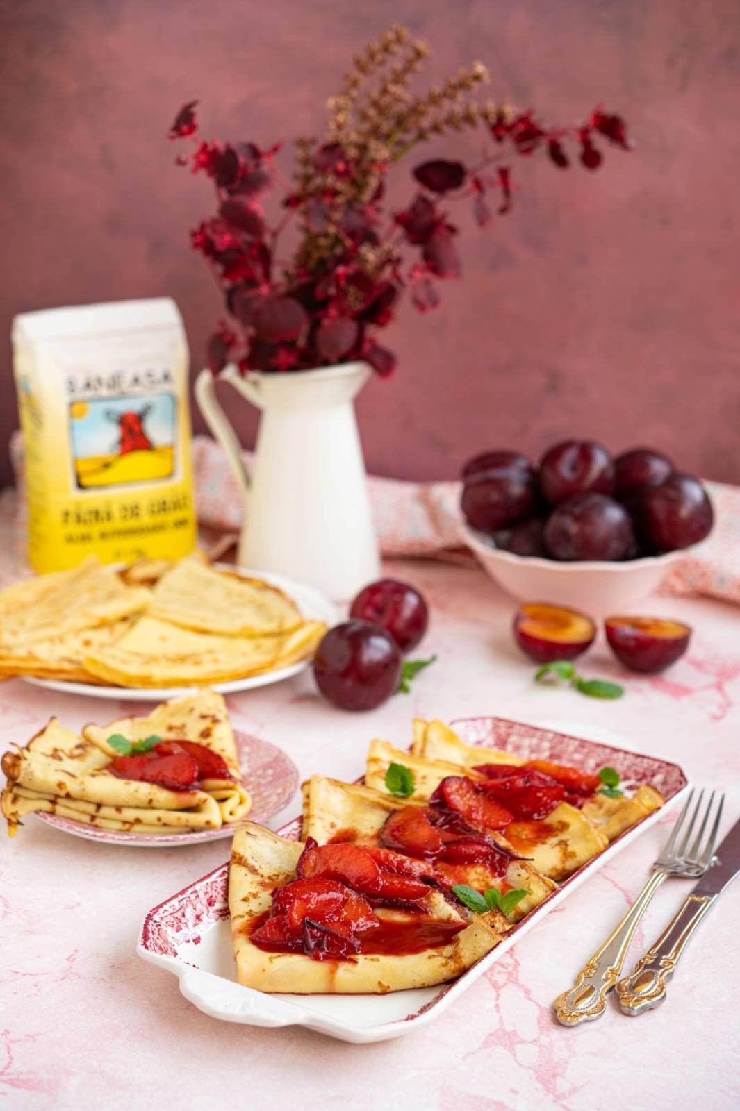 Când ai nevoie de un desert rapid, clătitele subțiri și elastice, dar și pufoase și aromate, peste care așezi un sos de prune cu scorțișoară și rom brun, îți vor însenina zilele de toamnă. Sunt delicioase!