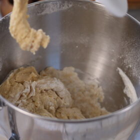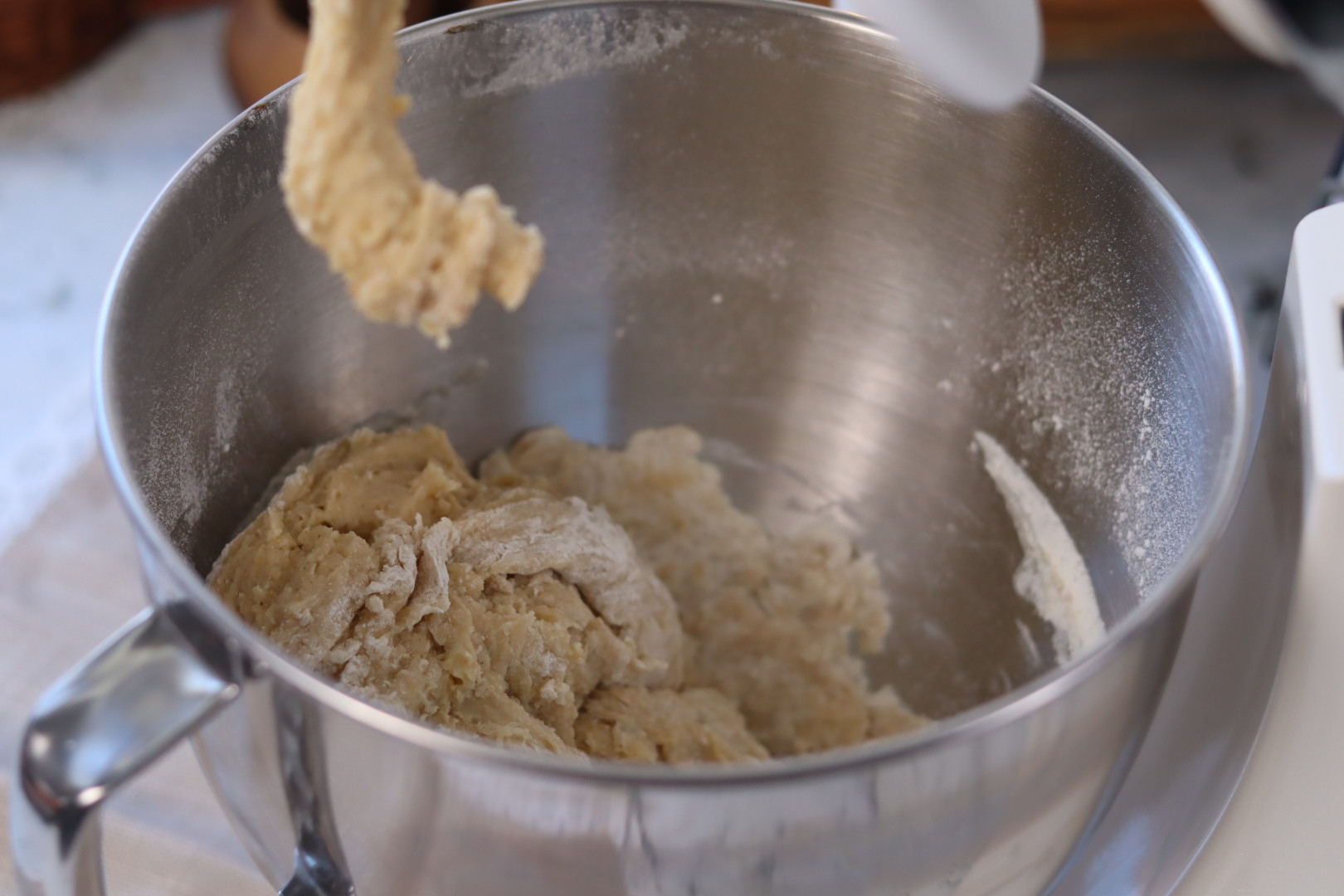 După 2–3 minute de frământare, adaugă treptat uleiul. Continuă frământarea 15–20 minute, la viteză medie-mare, până când aluatul devine elastic și ușor lipicios.