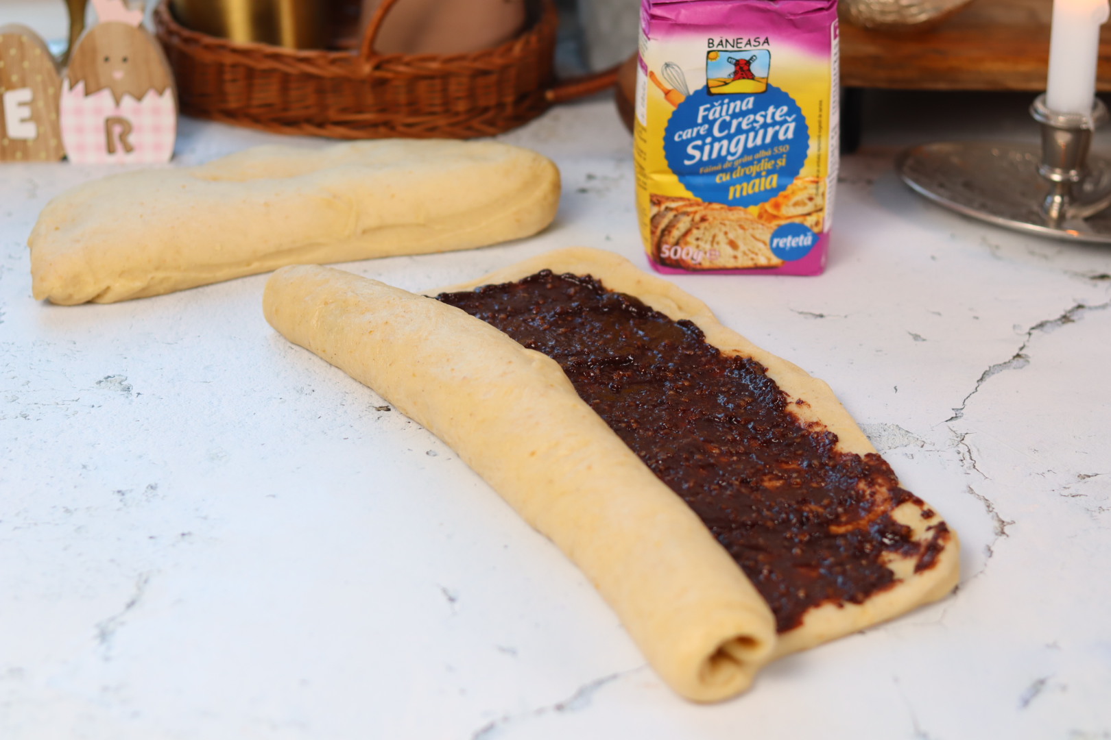 Aluatul obținut este elastic, ușor de modelat și capătă, după coacere, o textură fină și aerată. Umplutura de cacao și nucă adaugă profunzime și intensitate, completând perfect dulceața discretă a aluatului. Fiecare felie este bogată, aromată și plină de savoare, exact așa cum ne amintim din copilărie.