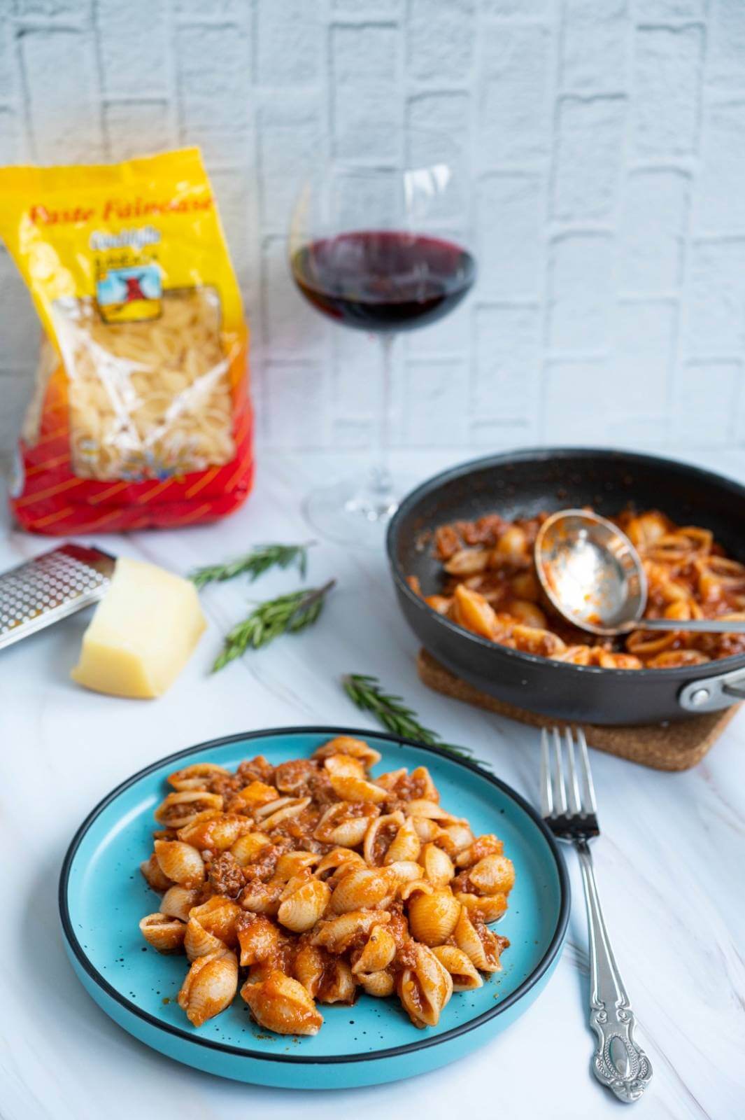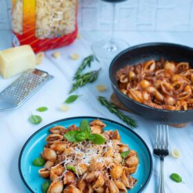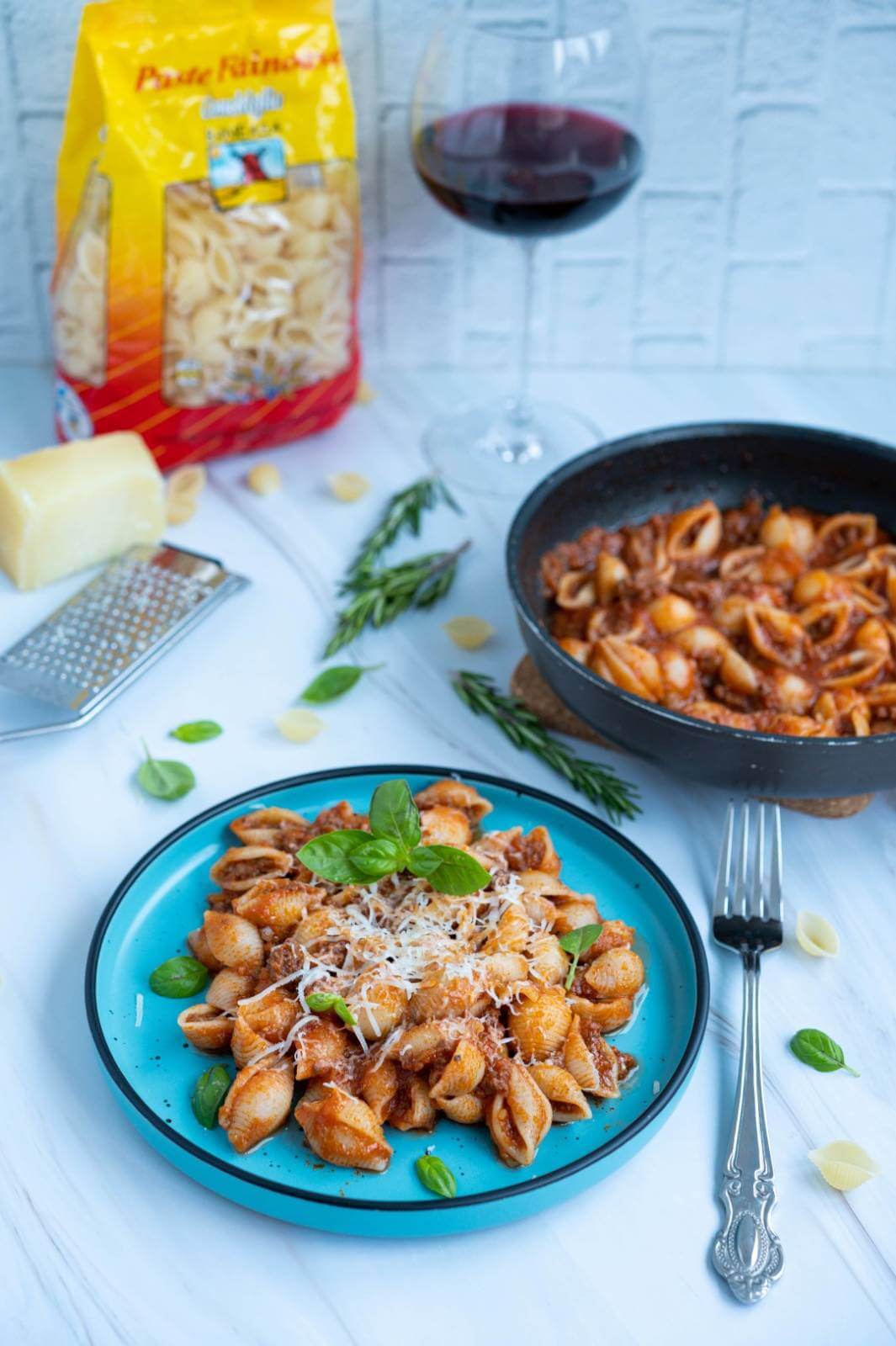 La acest sos ragu puteți pune ce paste doriți voi, inclusiv spaghette. Eu am decis să folosesc paste Conchiglie de la Băneasa pentru că sunt că niște scoici, care, atunci când sunt amestecate cu sos, păstrează în carapacea lor mai mult sos.