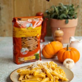 Însă astăzi vorbim despre pastele integrale cu dovleac. Puteam folosi niște paste obișnuite, însă am considerat că pastele integrale se potrivesc mult mai bine cu dovleacul și să știți că nu m-am înșelat! Chiar s-au potrivit foarte bine!