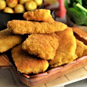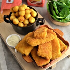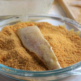 Pentru o crustă aurie care strălucește, pulverizați fiecare bucată de pește cu puțin ulei înainte de a introduce tava la cuptor și nu uitați să întoarceți bucățile de pește des, pentru a vă asigura că se rumenesc uniform.