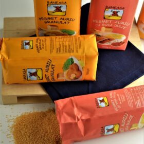 Pentru șnițele, crochete, gujoane, pui prăjit sau orice rețetî în care îmi doresc o crustă aurie și crocantă, folosesc Pesmet auriu granulat sau Pesmet auriu cu boia dulce, în funcție de gustul pe care îl doresc la final. Folosind acest pesmet auriu, crusta iese frumoasă, uniformă, aurie de fiecare dată, exact ca la rețeta de azi – Pește în pesmet.